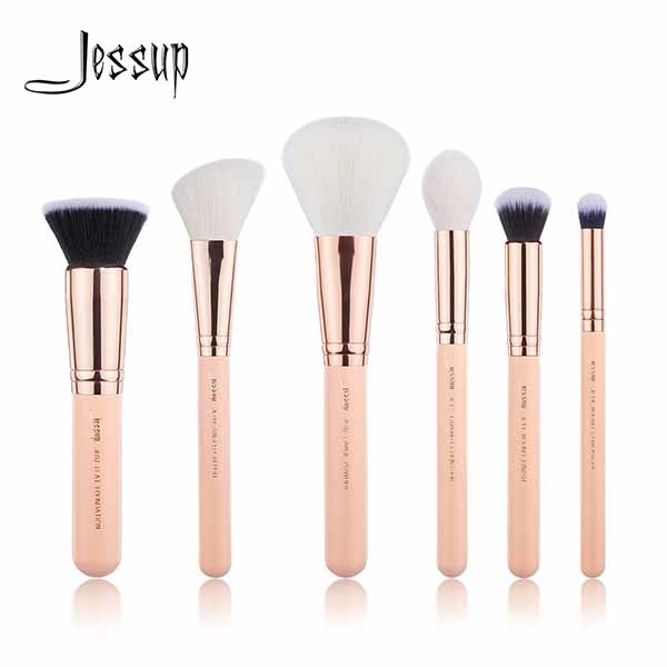 Jessup 6pcs Face Makeup Brush Set Naked Pink / Rose Gold FLAT FOUNDATION COUNTOUR Brush T458